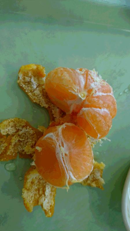 熊本県産の冷凍みかんは、今日のような暑い日にはぴったりのメニューでした。給食時間1時間前に冷凍庫から冷蔵庫へ、そして20分前に冷蔵庫から取り出してワゴンに置いておきました。子どもたちの口に入る頃にはちょうどいい具合に、シャーベット状に溶けていました。冷たすぎて「知覚過敏で歯にしみます・・・」といった声が子どもたち、先生方からもちらほらと聞こえてきました。