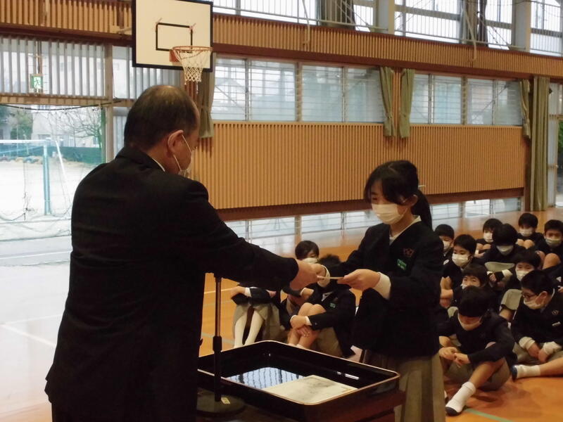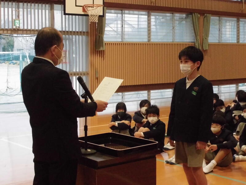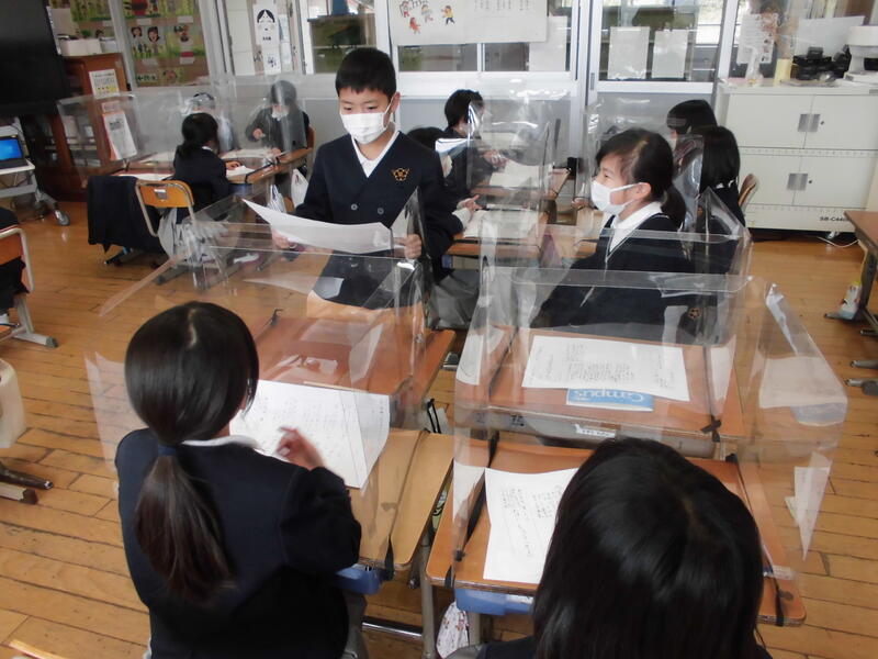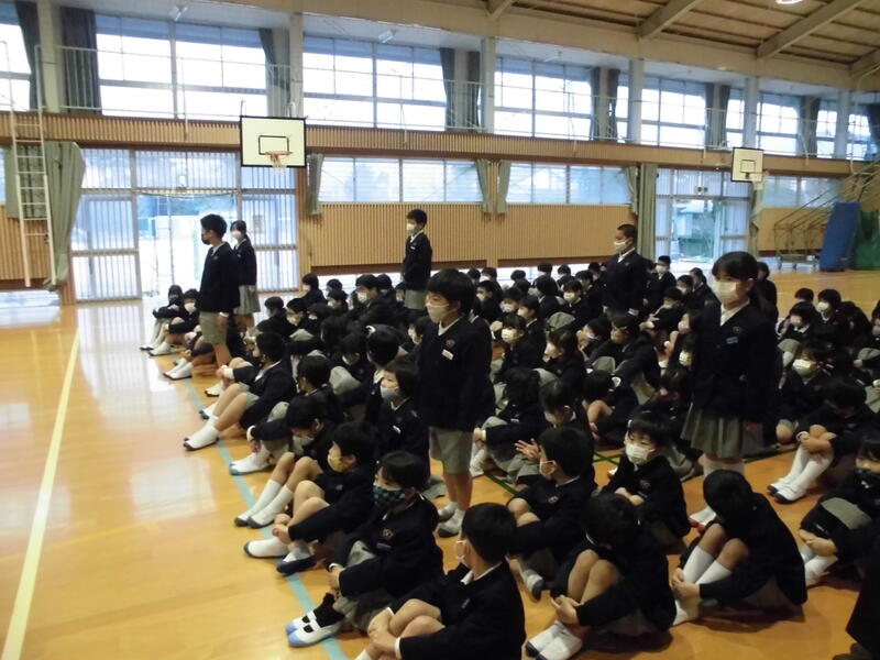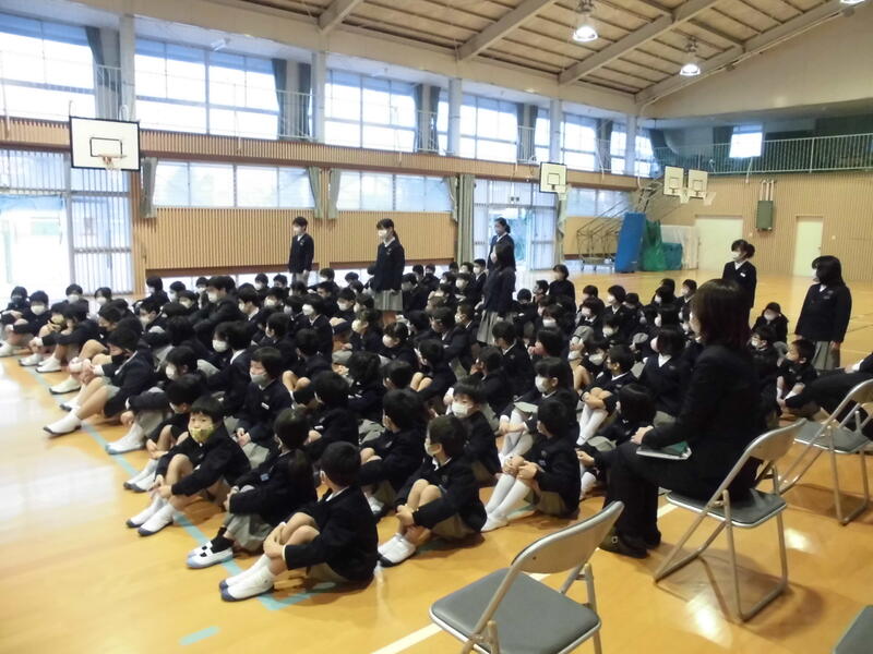 最後に、6年生から中学生へ応援メッセージを送りました。また、中学生からのお礼の言葉をみんなうれしそうに聞いていました。