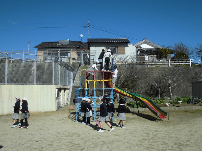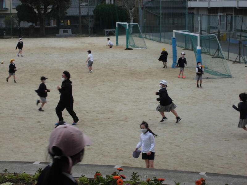 運動するのにとてもいい気候です。今日は1年生が鬼ごっこでたくさん走り回りました。