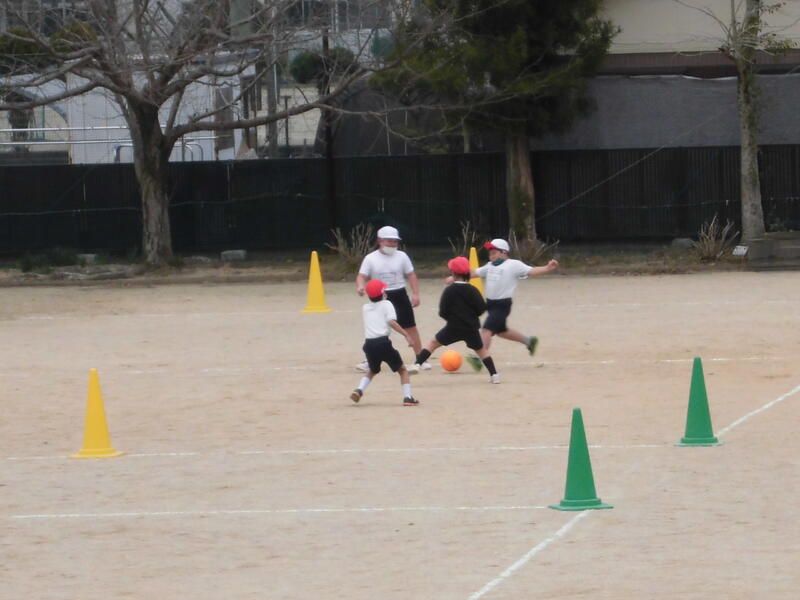 3年生が、体育の時間にキックベースボーをしました。みんな動きが素早い!
