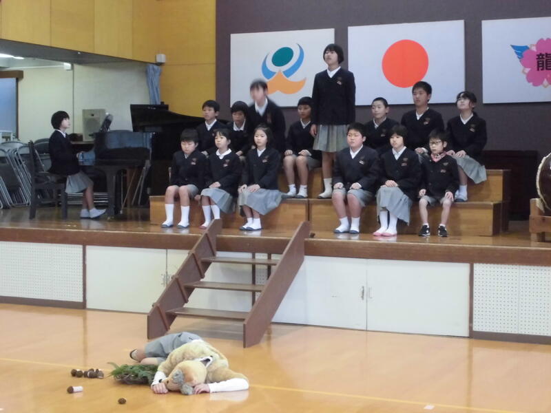 最後にホールで訓練の振り返りをしました。校長先生からは①自分の身を守ること ②高いところに逃げること ③訓練に真剣に取り組むこと という話がありました。災害はいつ起こるか分かりません。その時に自分で気づき、考え、行動する力が大切です。龍ヶ岳小の子ども達は、様々な避難訓練を真剣に取り組むことができています。自分の命を守るため、周りの人の命を守るために、今回の学びをしっかり覚えておいてほしいと思います。