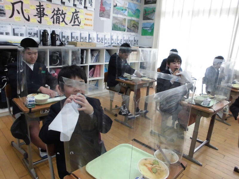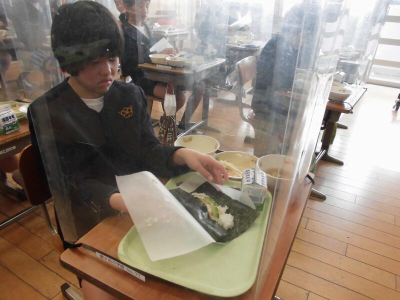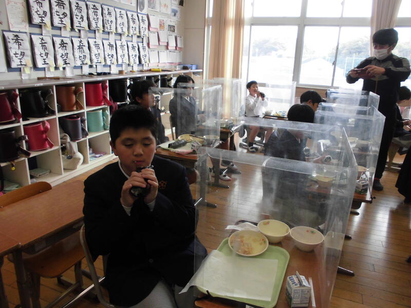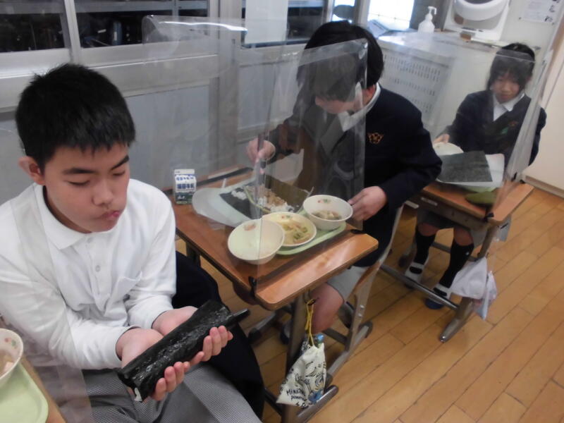 18日から中体連が開催されるということで、17日は6年生と中学生をリモートでつなぎ給食を食べました。