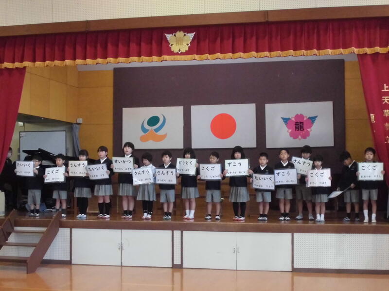 今学期も合言葉「KKJ」の力を更に高め、龍ヶ岳小みんなで力いっぱい頑張ります!