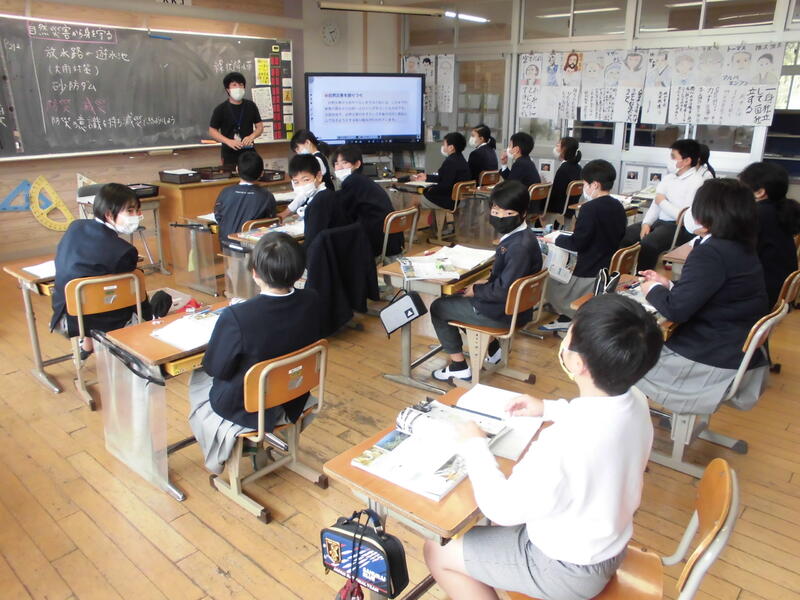 最後に、本校の川本先生が講話をしてくださいました。(「天草大水害について~今、思うこと~」)体験談を話してくださり、命の大切さ、日頃の生活があたりまえではないこと、災害の恐ろしさ等を改めて感じることができました。