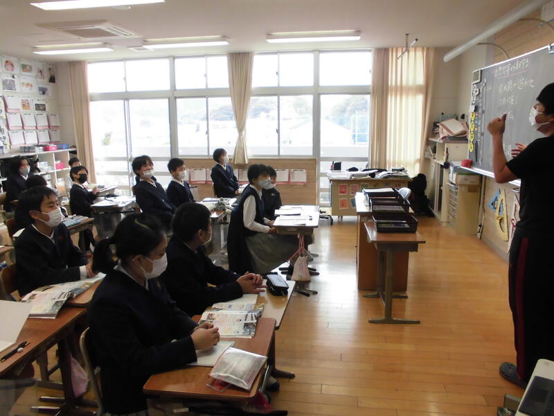 3年生の英語の授業です。11月から2人目の新しいALTの先生が来られました。