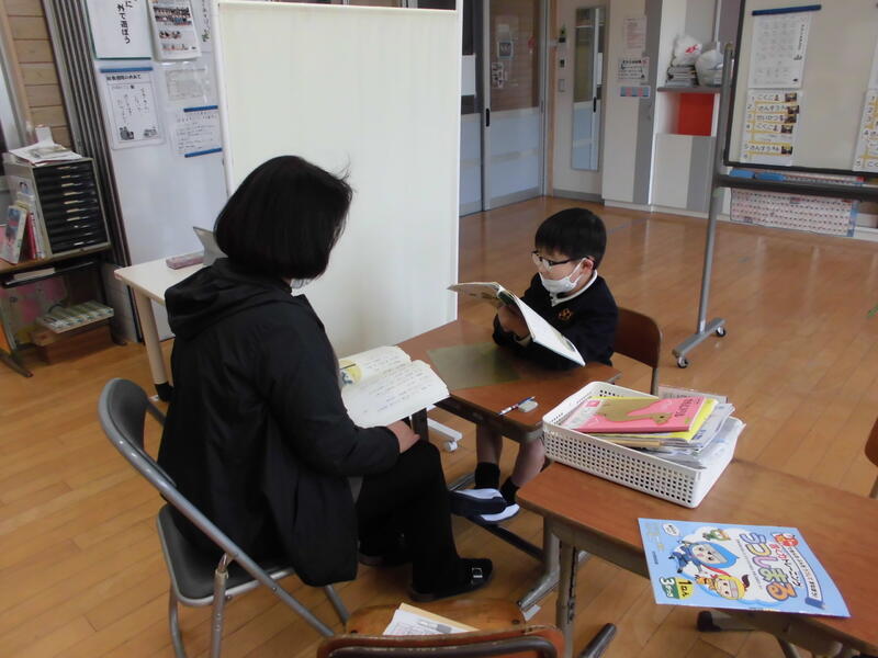 先生や上級生に聞いてもらい、合格の証!シールやサインを集めています。もう終わりに近づいている子もいるようです。