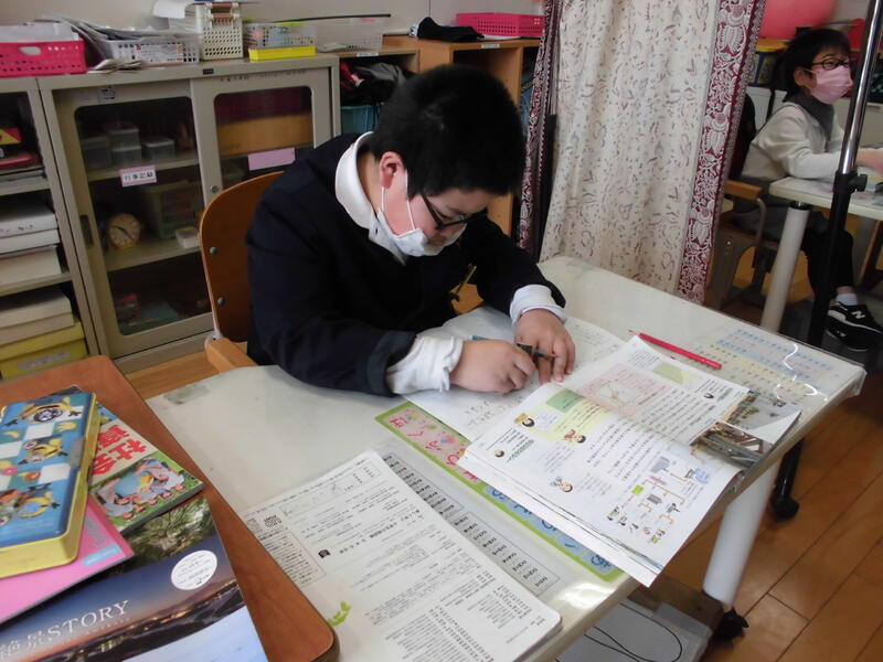 3年生と5年生は、2学期のまとめ。テストや問題集に取り組みました。