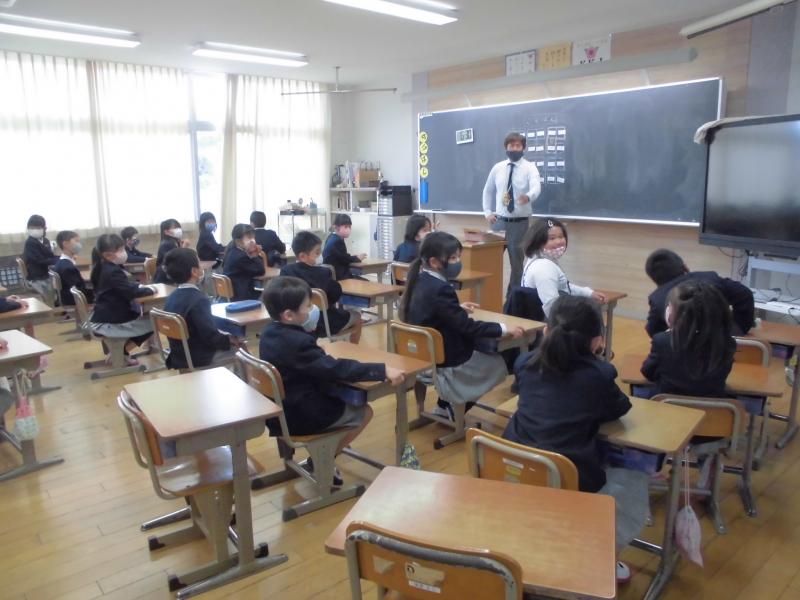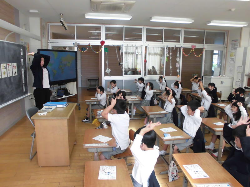 1年生はエイミー先生との外国語の勉強です。元気いっぱい!