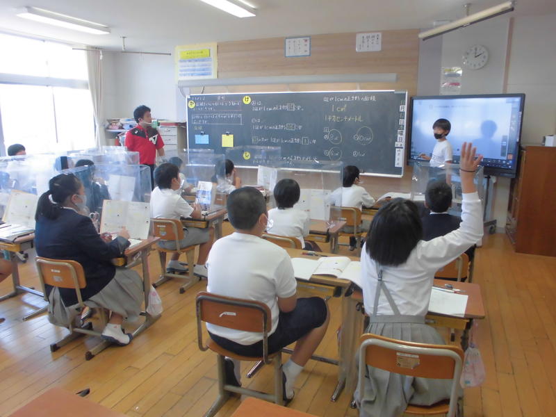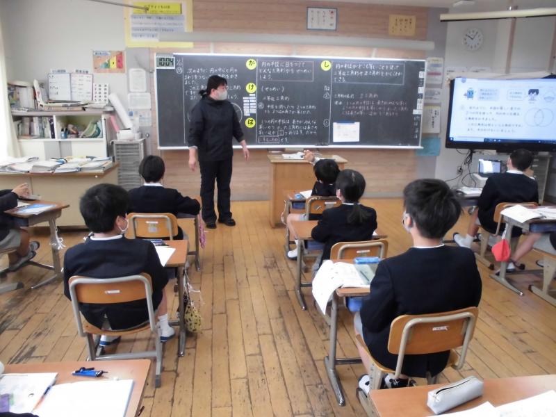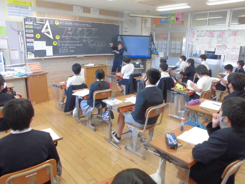 2時間目は5年生の算数の研究授業でした。上天草市教育委員会学習指導員の橋口先生も来校されました。