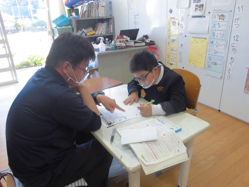 ひまわり学級は、先生と一緒に一対一で勉強です。