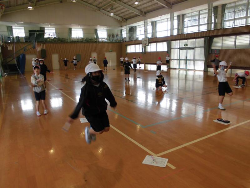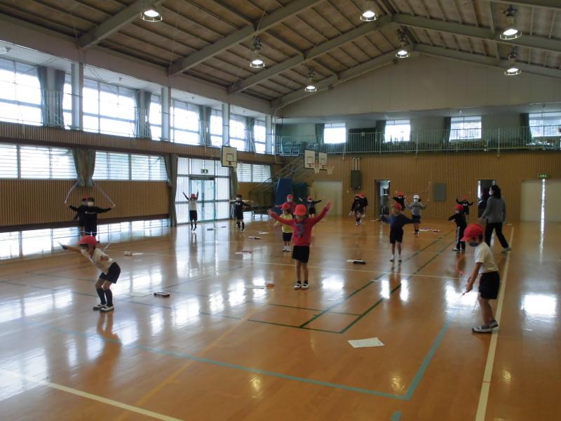 ラジオ体操の様子です。体操の細かい動き一つ一つを練習しました。短い時間でしたがこどもたちの上達が早いです!