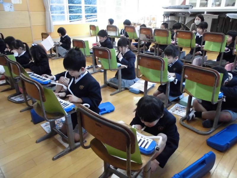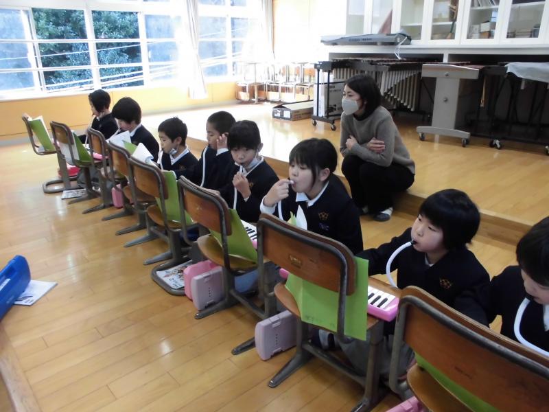1年生の音楽の授業にとび入り。立派なお兄さんお姉さんになった現1年生に驚いています。