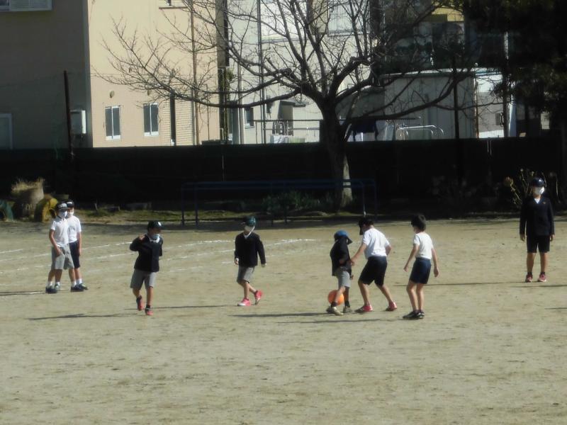 昼休みは、いろいろな学年が入り交じってリレーやバスケをしていました。学年の垣根を越えてみんななかよしです。
