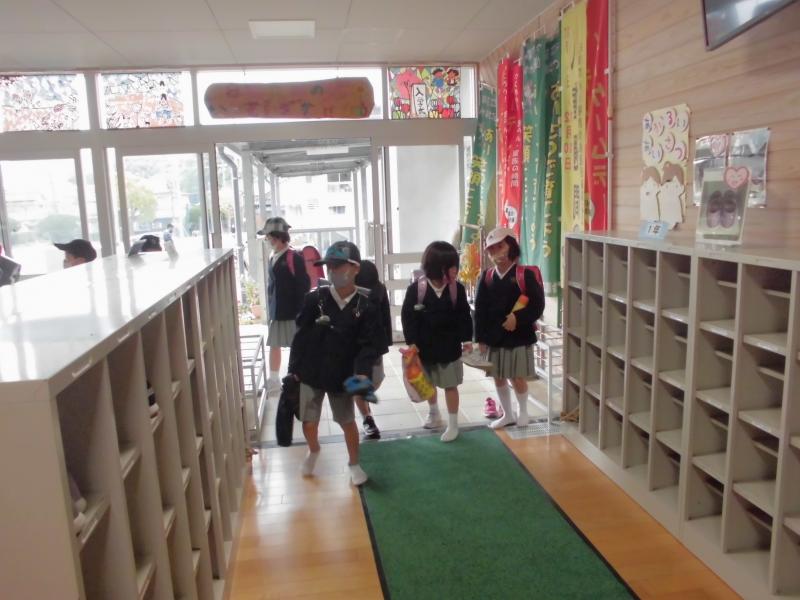 1,2年生が立派になりました。自分たちだけで、並んで下校します。もうすぐ新1年生が入学します。歩き方や横断歩道の渡り方