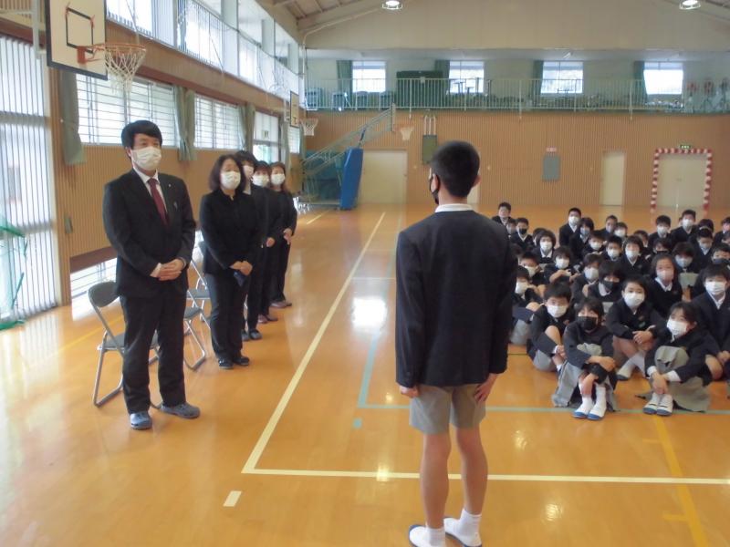 いよいよお別れです。退任式の様子です。4人の先生方とお別れをしました。