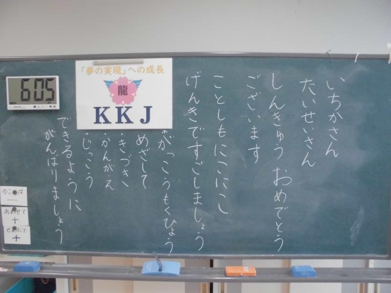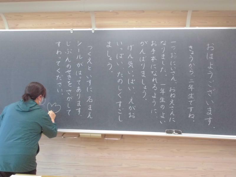 最後に、担任からこどもたちへのメッセージを紹介します。(前日に書いて準備しました)ちなみに、文字で担任がばれないように、代筆している学級もあります。