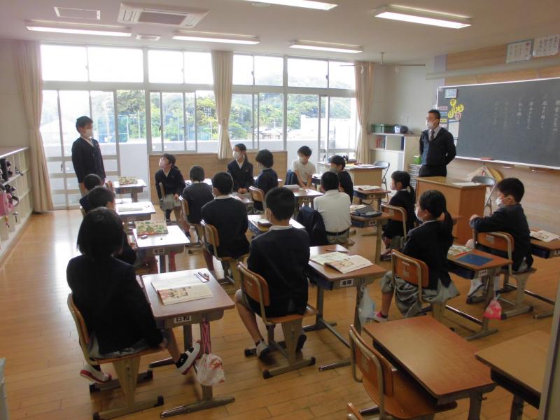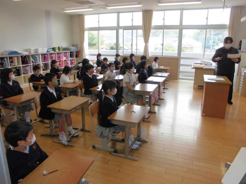 避難訓練後は、校長先生から一年間で起きる地震の回数と、海に近い龍ヶ岳は津波にも気をつけることが大切だというお話がありました。こどもたちからは、津波の速さと家をなぎ倒す津波の威力に驚く感想が聞かれました。もしものために・・・。日頃から常に危機意識を持ってほしいと思います。