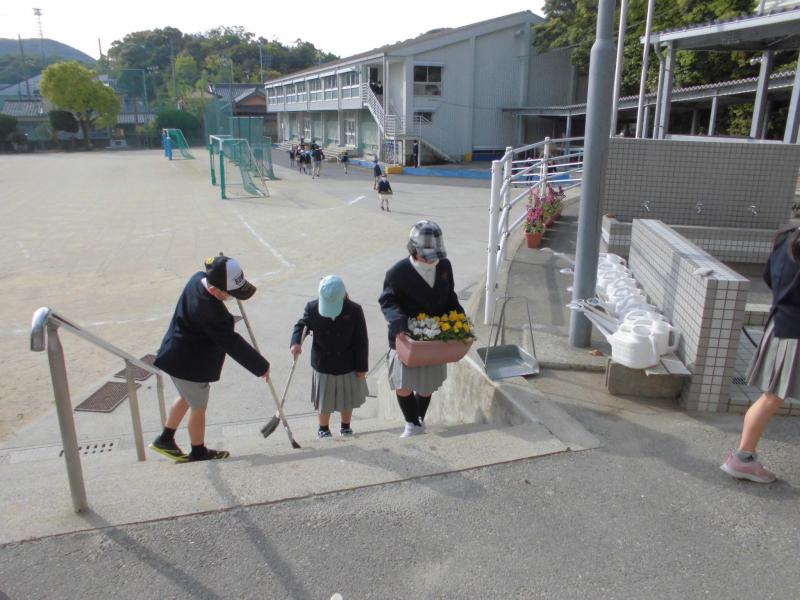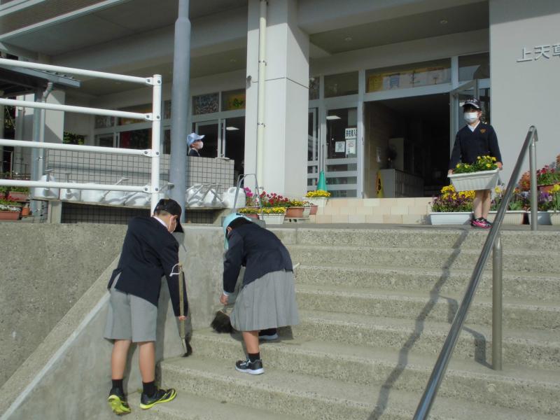 今日は120名全員が登校しました。幸先よいスタートです。子どもたちは登校後、あたりまえのように、黙々とボランティア活動に取り組んでいました。すごいですね。