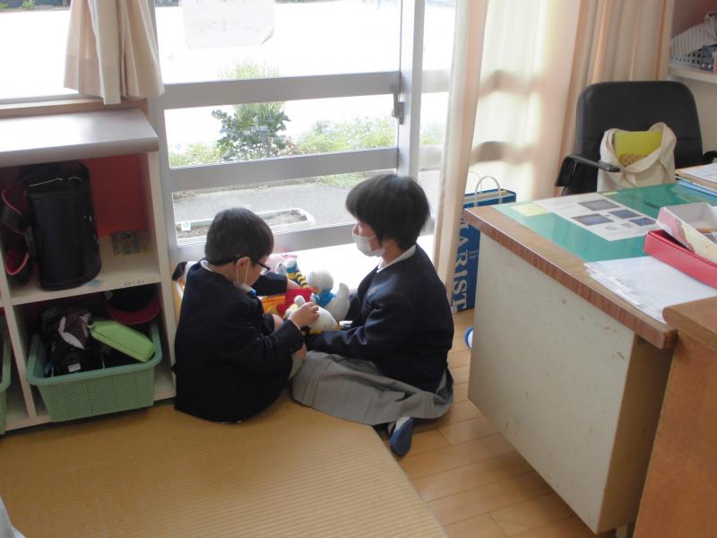 昼休みに人気のひまわり教室。たくさんのこどもたちが遊びに来ます。