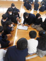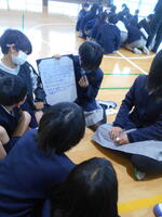人権旬間の最終日には、「人権集会」を行いました。学校生活の中での人権に関わる問題に気付き、話し合うことを通して、自分たちで問題を解決してよりより学校にしていこうとする意欲を高めるためです。テーマ「差別をなくし、みんなが笑顔になるためには」について話し合うため、まず「心のアンケート」集計結果を知り、次に熊本県人権子ども集会を視聴して他校の取組を知りました。縦割り班による話し合いでは、教師も加わるなどしながらしっかり考え、「『ありがとう』などの温かい言葉を使う」「イライラしている人がいたら、相談に乗る」などの意見が出ました。話し合ったことが実行できるよう気をつけながら生活していきたいと思います。
