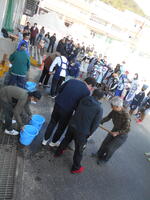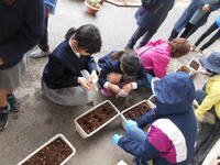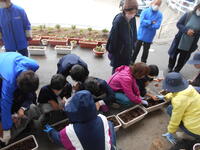 4年生が、更生保護女性会や民生児童委員の皆さん17名と一緒にチューリップの球根を植えました。植え方のこつを教えていただきながら植えたチューリップですので、春にきれいな花が咲くようにお世話をがんばっていきます。雨のため参加できなかった龍ヶ岳保育園の年長さんの分も心を込めて育てていきます。