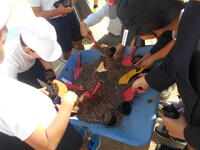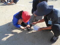 生活科の学習で、学校近くの高戸海水浴場へ行き、砂浜で思いっきりいっぱい遊びました。お気に入りの貝殻や石を拾って、「この貝きれい」「宝石あった。」「お寿司の石見つけた。」「この貝殻ブラキオザウルスみたい。」と喜ぶ子どもたち。平たい石を見つけて水切りをしたり、どこまで遠くに投げることができるかチャレンジしたりする子どもたち。身近な自然を体験して大満足の時間を過ごすことができました。