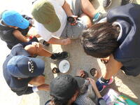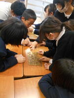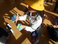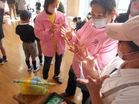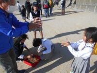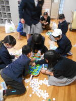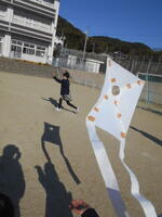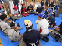 「昔遊び体験」では、たこあげ、竹とんぼ、こま、けん玉、お手玉、おはじき、あやとり、おりがみ、竹笛を体験しました。地域の方に遊び方や作り方などを教えていただきながら、子どもたちは、大いに昔遊びを楽しんでいました。一緒にしてくださる保護者の方もいて盛り上がりました。うまくできたとき、楽しめたとき、子どもたちは満面の笑顔でした。