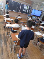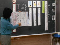「みきのたからもの」という物語について、登場人物同士がなかよくなったのか考えました。これまで、物語を初めて読んで「好きだな」「いいな」「不思議だな」と思った感想を交流して学習課題を設定し、あらすじを考えたり登場人物がどう思っていたのか考えたりしていたので、子どもたちは、どの場面でなかよくなったのか、なぜなかよくなったのか、しっかり自分の考えを持ち、発表をしっかり聞いて関連付けながら考えることができました。言葉にこだわりながら考えを深める姿が立派でした。これから、好きなところが伝わるようにお家の人に紹介する文章を書いていきます。どんな出来上がりになるのか興味津々です。