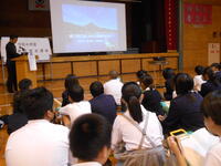 県文化課から講師2名をお招きして、4年生が熊本地震被災文化財復旧情報発信出前授業を受けました。熊本地震で被災した文化財の93%の復旧が終えたこと、阿蘇神社は壊れた部品11000点を一つ一つ調べ、直し方を考え、同じ材料で修復したことなどを知りました。また、龍ヶ岳は「国指定の文化財・名勝」であること、上天草市にある文化財である長砂連古墳(大矢野)、向陽寺雨乞いの鐘(松島)、そして、大作山棒踊りについて歴史や現在の様子なども知りました。また、他にもたくさんのことが分かりました。授業への子どもたちの反応がよく、文化財に高い関心を持っていることが伝わってきました。