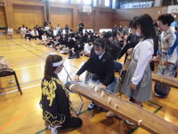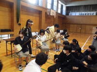 県教育委員会主催によるいきいき芸術体験教室を龍ヶ岳中学校と合同で開催し、「和楽器にぎわい座」のみなさんによる和楽器の演奏を鑑賞しました。子どもたちは、和楽器の生の演奏の迫力に驚き、感動していました。演奏に合わせて手をたたいたりかけ声をしたりする体験もできました。また、6年生は、和楽器の演奏に使われる太鼓、琴、三味線、鳴物の体験も行い、和楽器に直にふれ、演奏を楽しむことができました。普段の学習ではできない体験ができ、子どもたちの心が豊かに広がったのではないかと思います。鑑賞に来てくださった保護者・地域のみなさんたいへんありがとうございました。