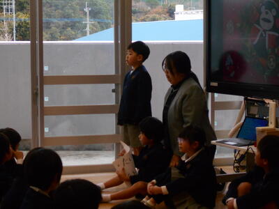 2年生は、生活科で樋島の探検に出かけました。港、お店、お寺などを訪れながら、質問をしたり話を聞いたりしました。アポなしで訪れたところもあったのですが、快く勉強に付き合ってくださるなど、地域の皆さんには感謝しかありません。子どもたちは、出会った方に自分たちからどんどん質問をしていました。いろいろな方にお世話になって、子どもたちも大満足な探検となりました。