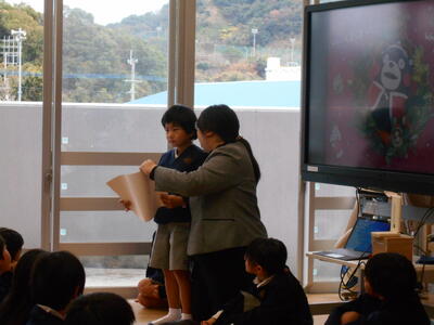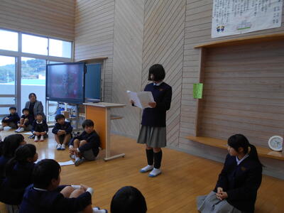本日、終業式を行いました。各学年の代表の子が、二学期頑張ったことと冬休みと三学期の目標を力強く発表しました。それぞれの子が、自分の頑張りを振り返り、自信を持って発表する姿が印象的でした。立派でした。
