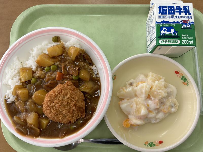 2月9日(金)カツカレーライス、牛乳、フルーツヨーグルト