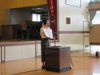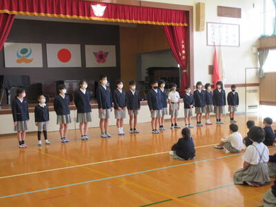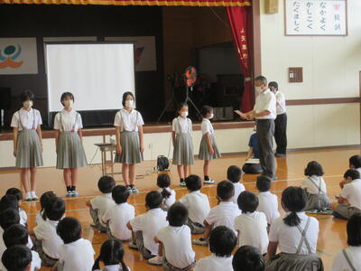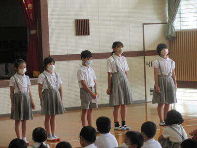 朝の児童集会の時間に、各学級の代表の目標発表がありました。それぞれ、学習面や生活面、家でのお手伝い等の目標や、それを達成するためにどのようなことをやっていくのかを伝えることができました。目標に向かって、あきらめず何事にも挑戦していってほしいと思います。
