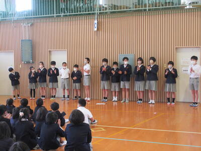 運営委員からは、あいさつ運動での気づきの報告でした。大きな声で、相手よりも先にあいさつをすること。学校へ来られた保護者の方やお客様にもあいさつをすること。教室に入る時に友達のあいさつをすること等の提案をしてくれました。