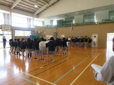14日は歓迎遠足でした。龍ヶ岳グラウンドへ行く予定でしたが、雨の為、体育館でのレクリエーションを行いました。