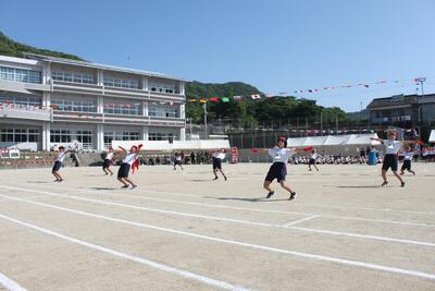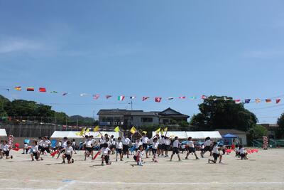 運動会スローガン「一致団結~最後まであきらめない龍っ子~」のもと、子どもたちは元気いっぱい演技や競技を頑張りました。