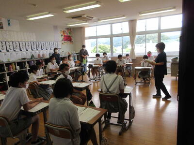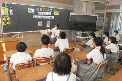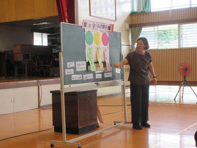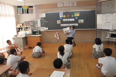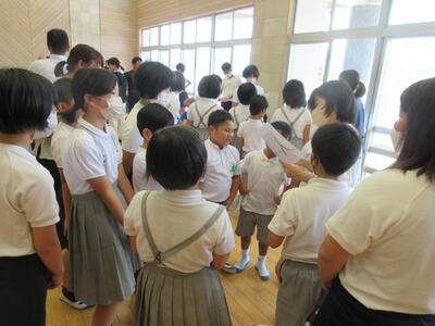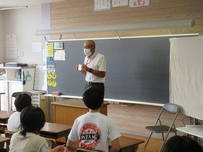 5時間目に授業参観をしていただきました。その後、下校前に体育館で民生委員さんの紹介をしました。子どもたちも自分の地区でお世話になっている方々を知ることができました。子どもたちの登下校を見守ってくださったり、困ったことがあったら相談にのってくださったりすることも分かったようでした。