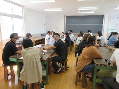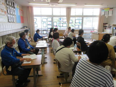 子どもたちが下校した後、職員との懇談を行いました。地域での子どもたちの様子、安全面、あいさつ等が話題になっていたようです。学校、地域、保護者、行政で子どもたちを見守っていきたいと思います。