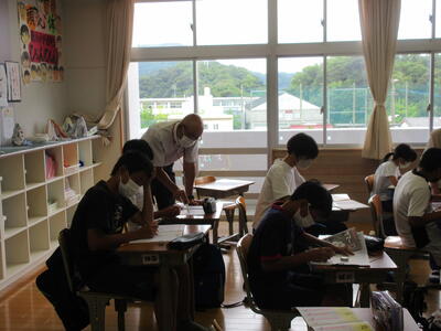 5日は、ペーロン艇乗体験、ハイキング、館内オリエンテーリング、キャンドルの集いがありました。ペーロンでは、みんなで力を合わせて最後までこぎ、ゴールの西目海岸へ到着することができました。ハイキングでは、急な山道もありましたが、声をかけ合いながら歩き続けることができました。自然の素晴らしさも満喫することができたようです。更に、キャンドルの集いでは、天草市の新和小学校の友だちの一緒に楽しむことができました。