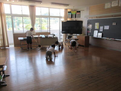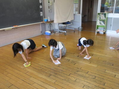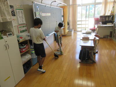 その後、各分担場所にわかれて掃除を行いました。上級生が下級生に声をかけ、みんなで協力して取り組むことができました。振り返りまでばっちりでした。