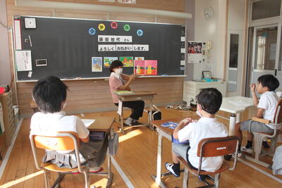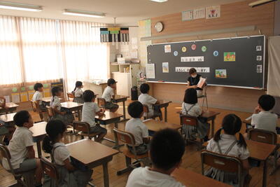 26日(木)の外国語の時間にハロウィンパーティーが行われました。濵本先生、ルー先生、リンジー先生が準備をしてくだいました。子どもたちも先生方と英語でやりとりをしながら、色々なゲームに挑戦していました。外国の文化を学ぶこと、英語でのやりとりを楽しむこと等の学びがありました。