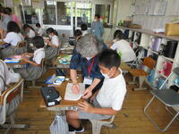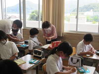 今回は、手縫いで雑巾を作成するという内容でした。前の時間に、玉どめ、玉結び、波縫いなどを学習した子供たちです。地域の方に丁寧にアドバイスをしていただきながら、一生懸命取り組むことができました。手縫いの楽しさも感じることができたようです。