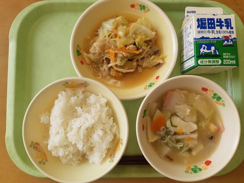 10月25日(水)麦ごはん、牛乳、回鍋肉、にらたまスープ