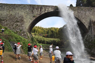 なぜ通潤橋ができたのか、誰が造ったのか等、詳しく事前学習をしての見学だったので、実際に見たときは、とても感動していたようでした。