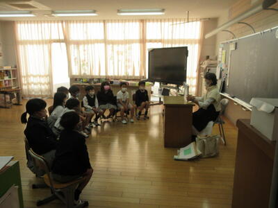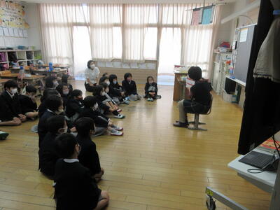 今日は、朝から地域の方をお招きして、読み聞かせをしていただきました。2年ぶりの読み聞かせを、子ども達もとても楽しみにしていました。