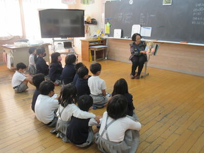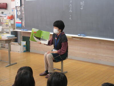 1年生は小林メイ子さん、2年生は佐々木好恵さん、3年生は川口たまみさん、4年生は谷永由美さん、5年生は山本啓子さん、6年生は藤田智代さんに読み聞かせをしていただきました。それぞれの学年にあった、お話を準備していただき、笑顔で読んでいただきました。子ども達も心で様々なことを感じたり、楽しんだりしながら聴くことができました。
