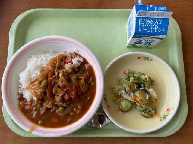 今年度最初の食育の日のメニューは、龍ヶ岳町の「梅肉ポーク」を使ったハヤシライスを取り入れました。