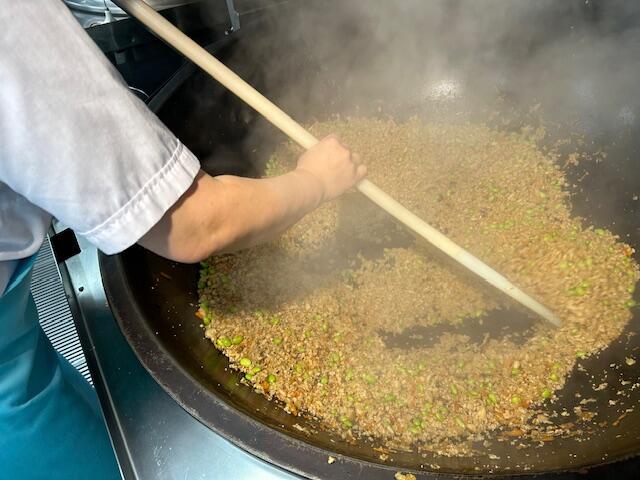 麻婆豆腐の材料は、すべてみじん切りにするのが大変で、こうやって作ったんだよって1年生に話をしたら、「僕たちのためにありがとうございます!」