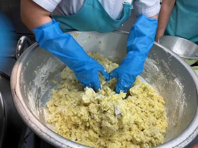 学校給食では食育の日や行事食、応援給食など給食で学べる内容を取り入れています。今回は、郷土料理を取り入れ、子どもたちにも紹介しました。古くから地域で食べられてきた伝統料理なども知っておいてほしいと思います。「だご汁」は熊本県内でも他県でも食べられる料理ですが、それぞれの地域の季節の食べものなどを取り入れた郷土料理でもあります。給食室では1年生でも食べやすいようにといつもより小さめのだごを作ってくださいました。